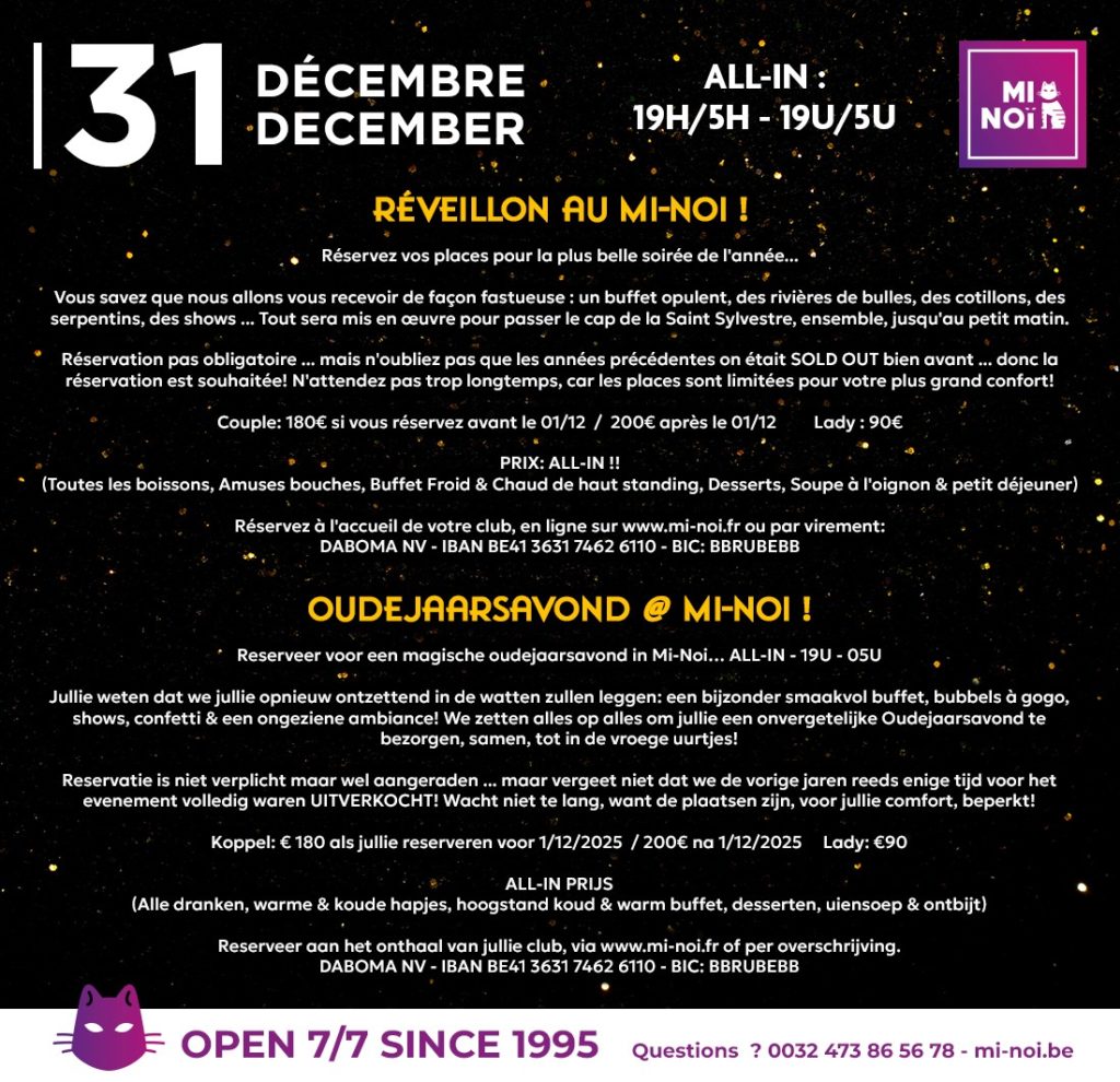 Jullie club is elk jaar gesloten op 24 & 25 december alsook op 1 januari.